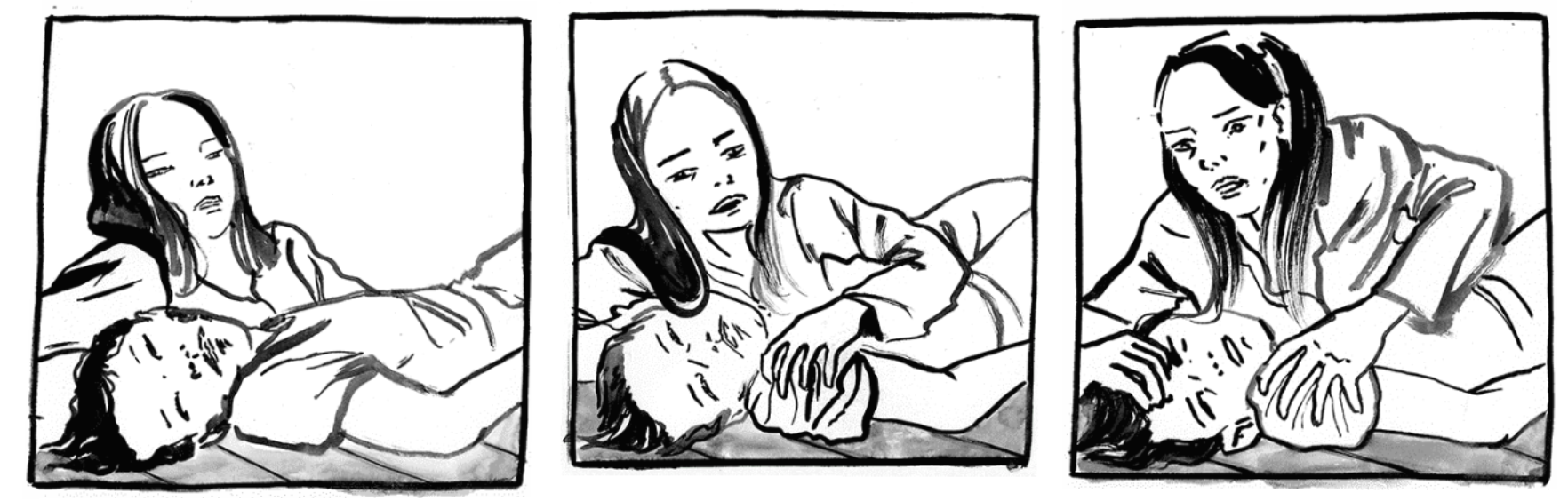 As the Boat features still images, the artist is able to convey the story through his drawings, as such the depth of field is able to be signified which draws the attention of the viewer to focus on the characters in which the artist has brightened. This encourages the viewer to empathise with the 16 year old refugee who had just been sent off alone by her parents, the artist is able to show this through the sharpness he adds around the girl.